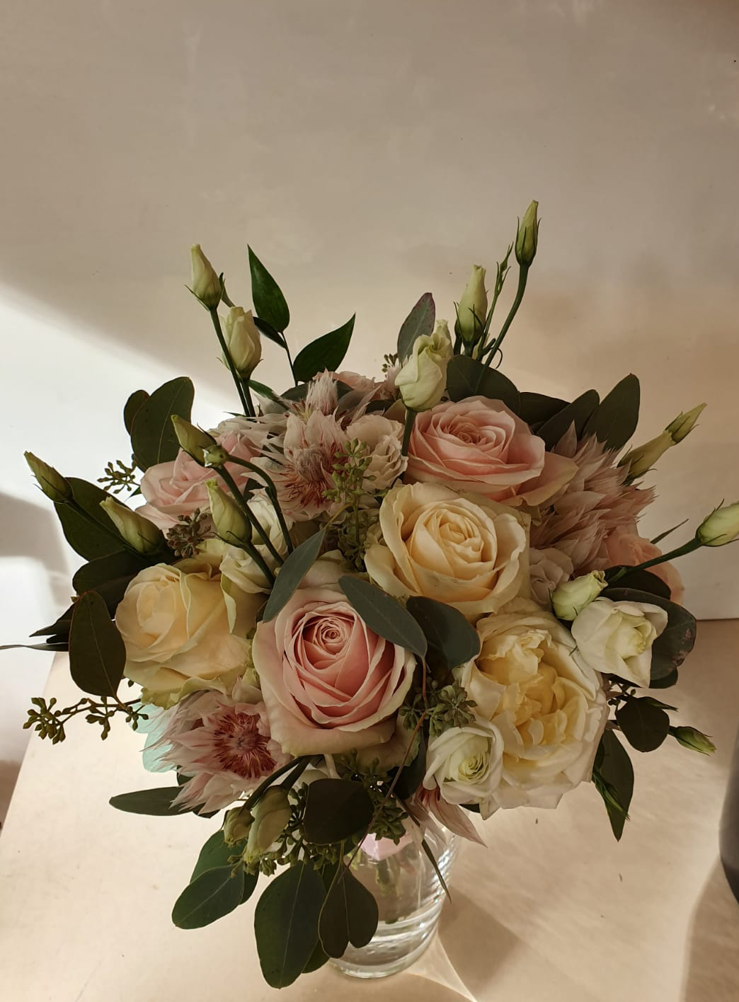 diverse roze rozen en lisianthus